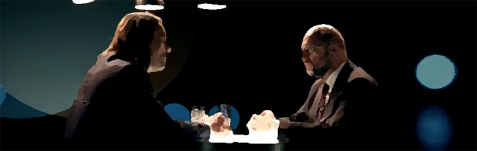 Der zweite Link verweist auf das Video-Interview von Richard David Precht mit Martin Schulz. Da kann man dann immerhin so etwas hören, von einem sehr ernsthaften und konzentriert sprechenden Schulz: